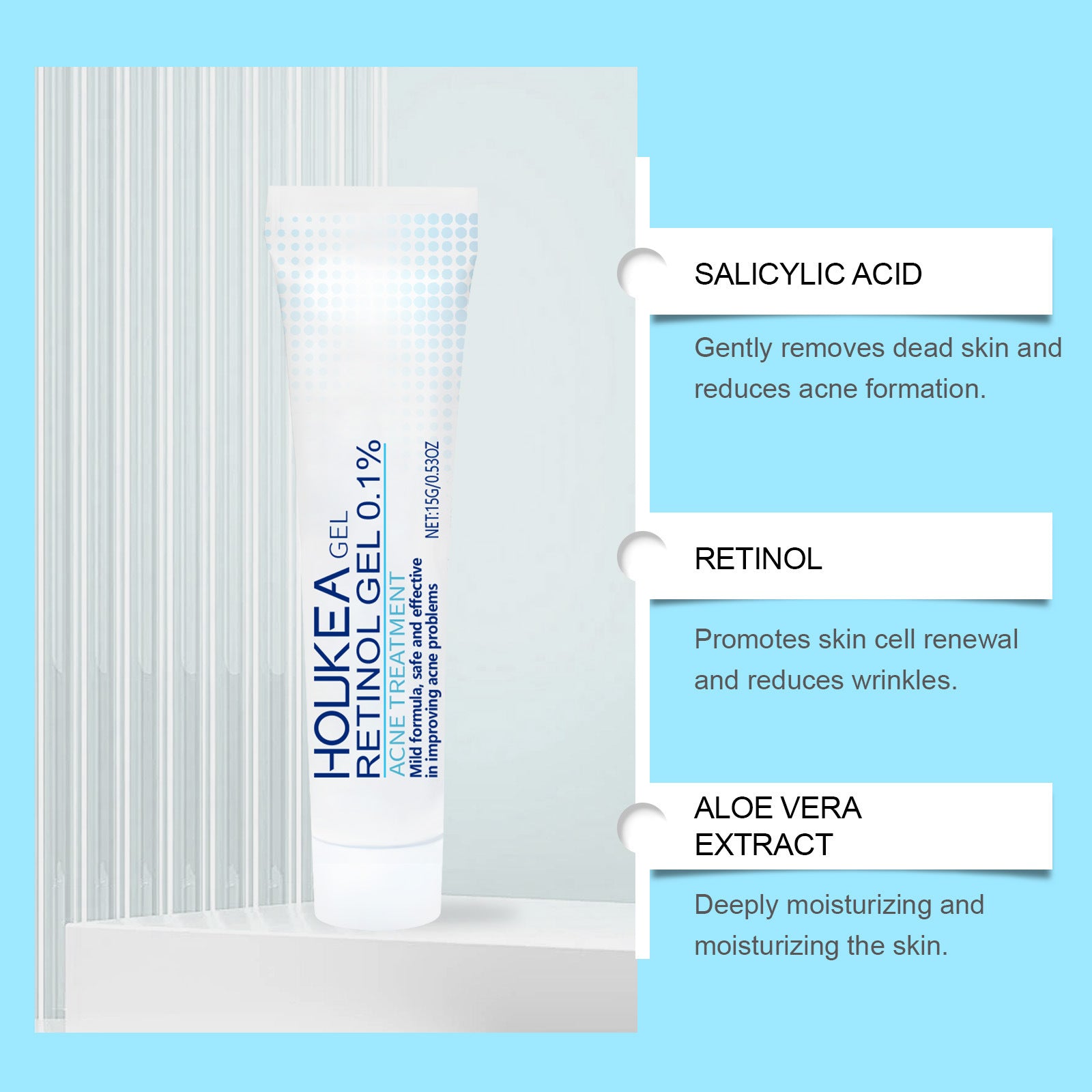 Ingredients: salicylate, retinol, alternate leaf cajeput leaf extract, aloe vera extract, hyaluronic acid